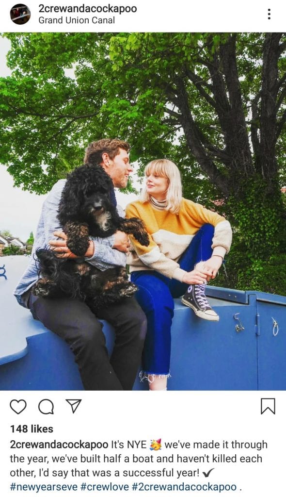 Gabby Heneghan, 26, and Calum Henderson, 28, live with two-year-old cockapoo Bilston on their recently renovated houseboat, and are currently moored in London’s Little Venice during lockdown.