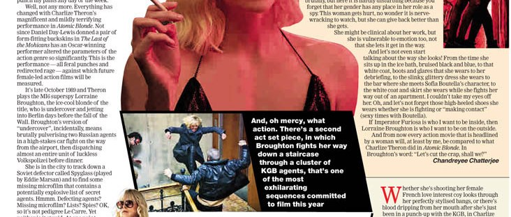 This article was written for The Telegraph, India, and can be viewed online here Whether she's shooting her female French love interest coy looks through her perfectly stylised bangs, or there's blood dripping from her mouth after she's just been in a punch-up with the KGB, in Charlize Theron’s new movie, Atomic Blonde, you can’t help … Continue reading Why is Charlize Theron so awesome?